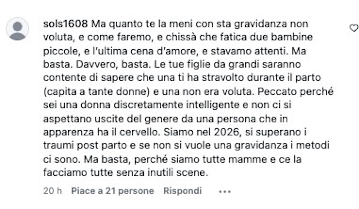 Queste parole hanno scatenato una serie di reazioni online, con alcuni commentatori che hanno criticato la sua apertura riguardo le difficoltà della gravidanza, suggerendo che, essendo il 2026, ci sono metodi per evitare una gravidanza non desiderata. Altri hanno difeso la sua libertà di esprimere dubbi e preoccupazioni, sottolineando che anche chi vive in condizioni privilegiate può avere timori legittimi.