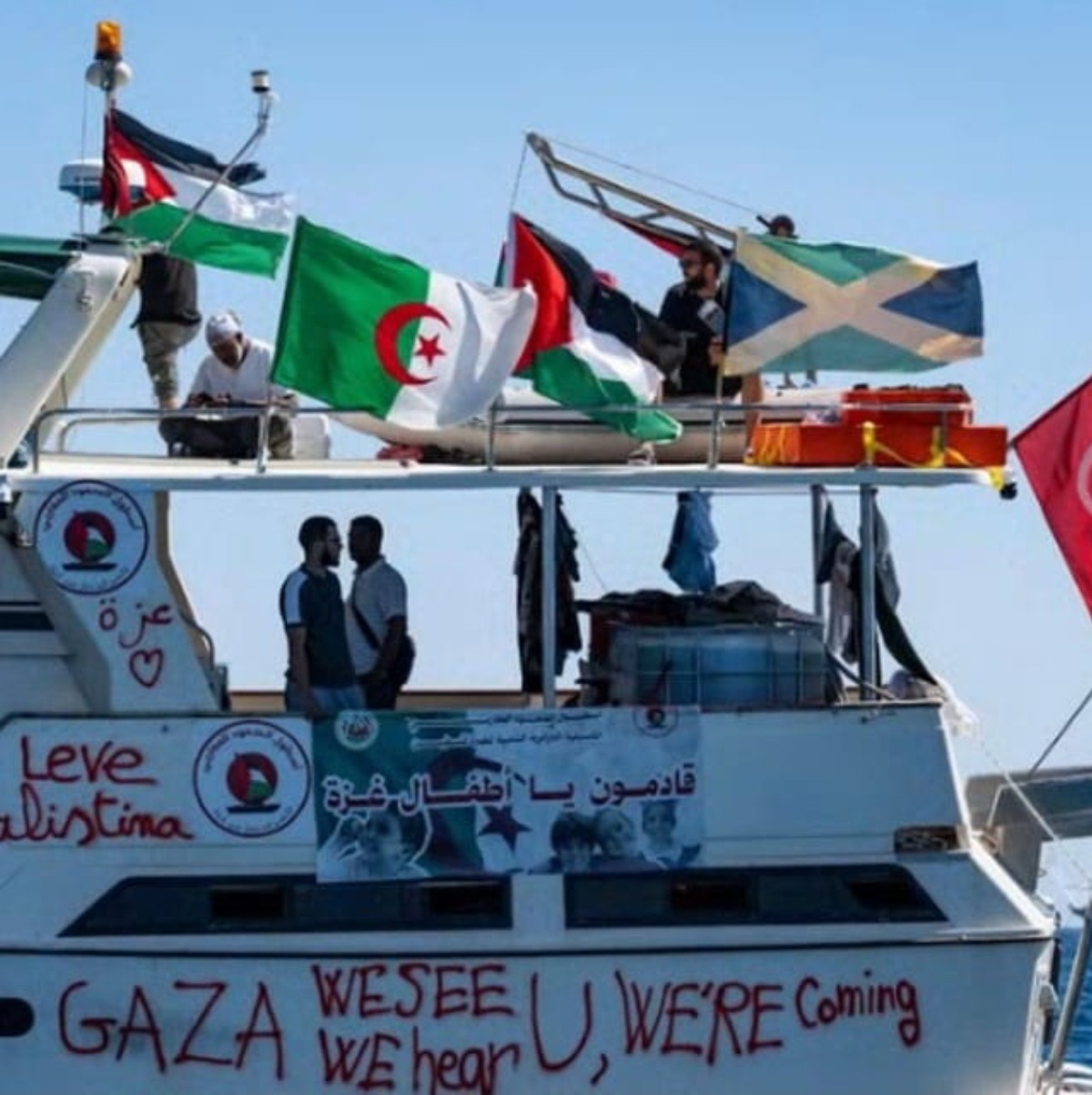 Palestinian actor and comedian Mahmoud Zuaiter stands on a rooftop with a view of the sea, hoping to see the #GlobalSumudFlotilla reach Gaza's coast@MiddleEastEye pic.twitter.com/iLyuHBRAP6