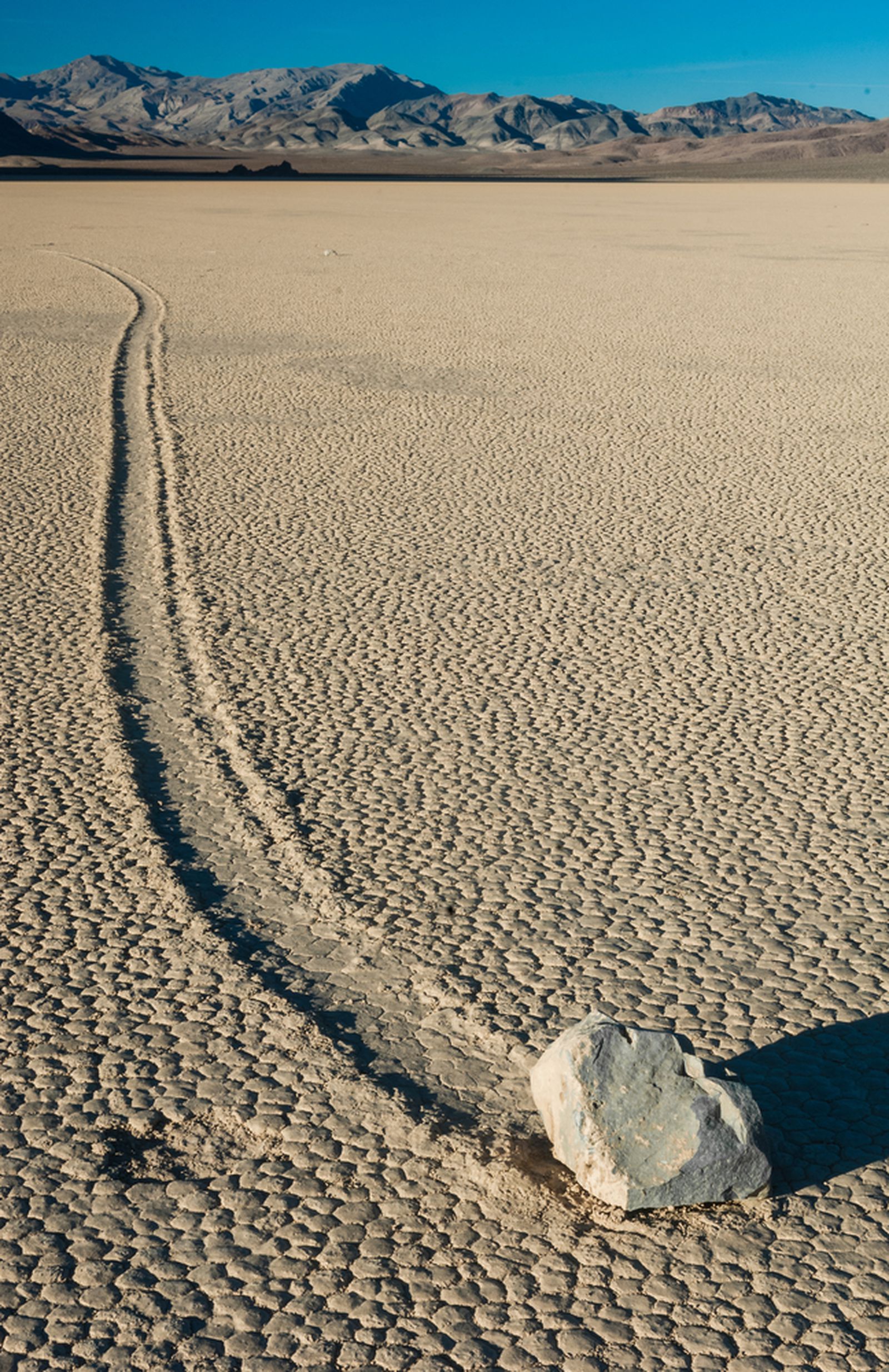 Il percorso è insolitamente piatto e spesso cambia direzione ad angolo retto. Quale animale cammina così? Nessuno. Se inizi a seguire il sentiero, questo ti condurrà alla pietra. Si chiamano pietre che galleggiano nel deserto e per decenni non se ne conosceva il motivo.